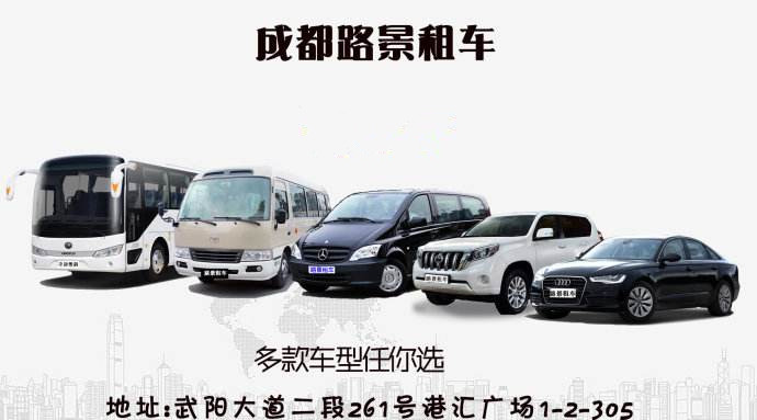 成都代駕租車推薦路景租車,路景租車所有司機均接受專業駕駛訓練,服務態度親切有禮,讓顧客可安心乘坐我們的車輛,輕松往返任何目的地,不僅僅是商務接待,外事活動,旅游出行,您的任何高標準、嚴要求的租車需求,我們都會盡量滿足,同時為您提供多方面,多層次的服務,為你安排方便、安全、舒適的旅程。