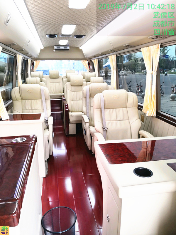 其中考斯特做的好的租賃公司,路景租車肯定能上排名。路景租車,考斯特車型15~13座,其中15座豪華考斯特的內飾條件,放眼成都租車市場,沒有幾家能做到,液晶電視、皮座套、按摩椅、辦公桌、車載冰箱飲水機,自駕充電插口,商用旅行用都舒適又體面。